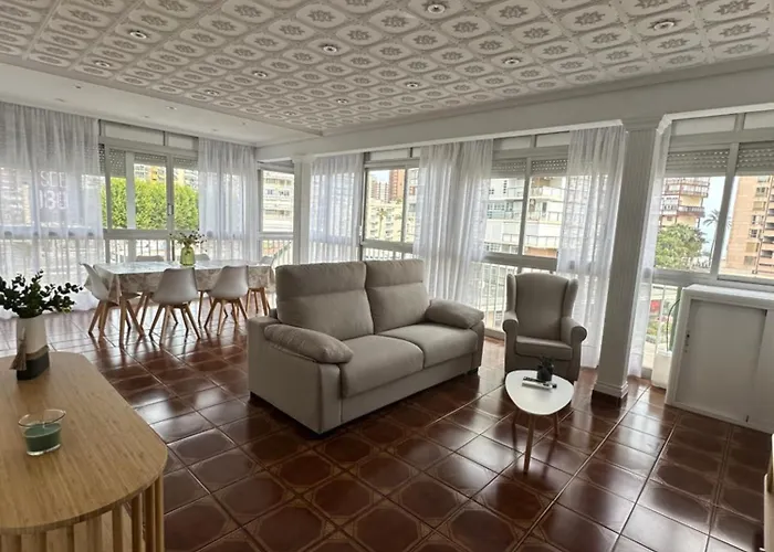 The 130 m² Apartamento Ensenada Benidorm enjoys a beachfront location merely a 7-minute walk from the L'Aiguera Park. At this 2-bedroom apartment, Wi-Fi and private car parking are also provided.